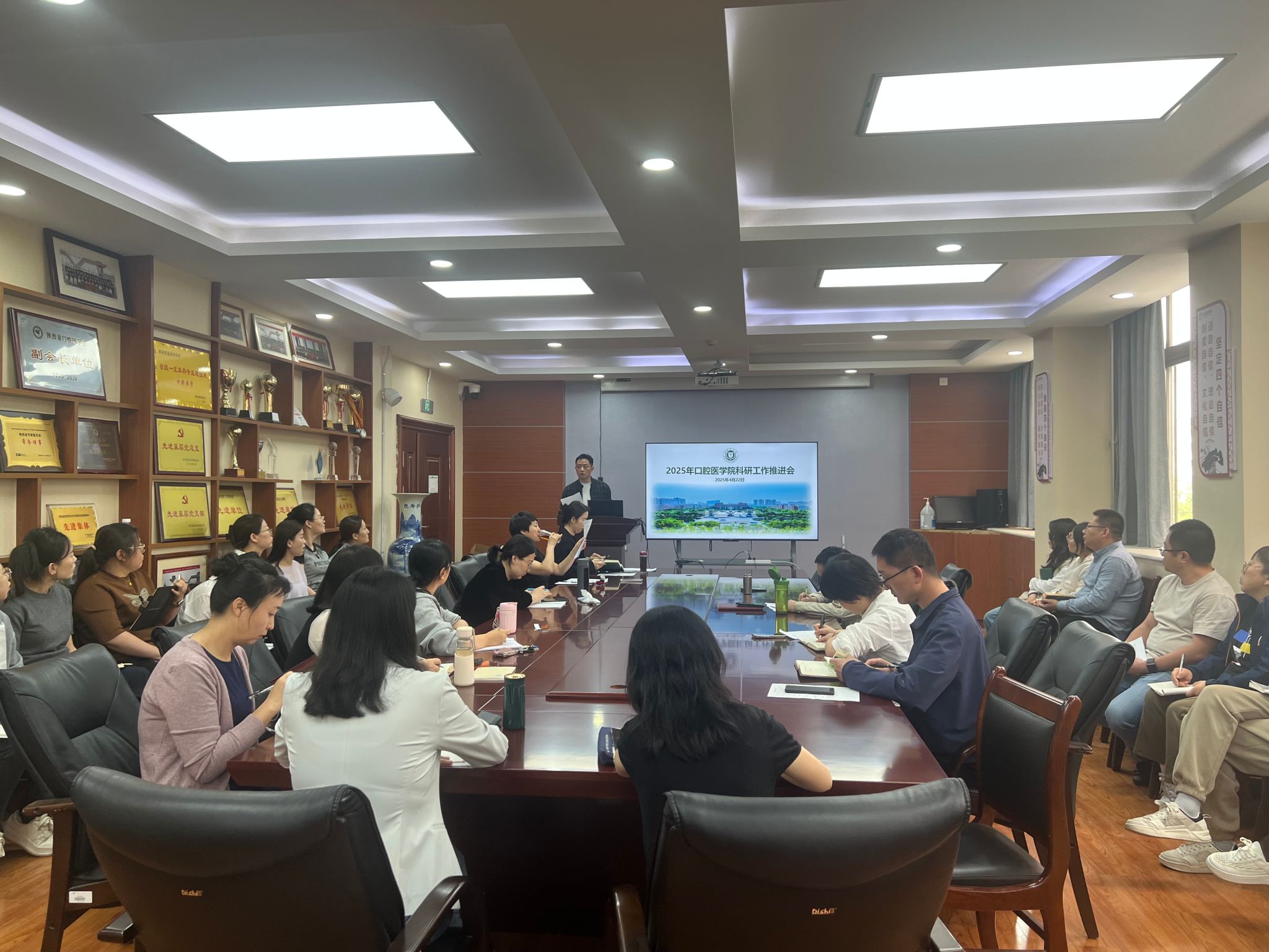2025年4月22日,pp电子官方网站在五楼会议室召开了科研工作推进会。此次会议由pp电子官方网站副院长梁飞主持,他首先强调了科研工作对提升学院整体实力和影响力的重要性,并表示此次会议的主要目的是明确本年度的科研目标,同时就纵横向经费及论文任务进行合理分配。