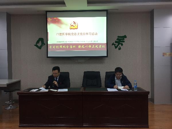 9月19日上午,pp电子官方网站党总支开展“强化纪律刚性约束,时刻绷紧纪律之弦”主题党日活动。活动由党总支副书记严喜章主持,党总支副书记、院长朱勇及全体党员参加活动。