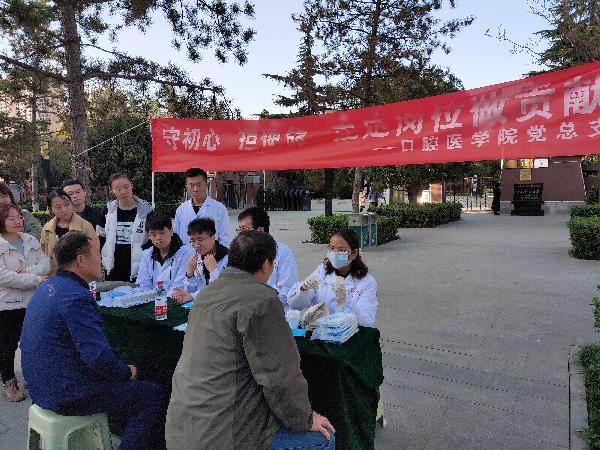 随后,pp电子官方网站师生党员为陵园家属院的家属进行了口腔义诊活动。大家耐心地为咨询者解答他们的各种口腔问题,检查口腔健康状况、发放口腔保健宣传资料,并为家属就如何正确的刷牙、牙病的预防等口腔保健知识进行了讲解,陵园家属给予了极高的赞赏,现场反响热烈。