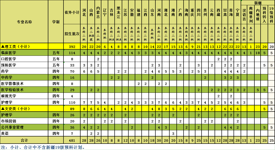 2019年我校省外招生计划一览表