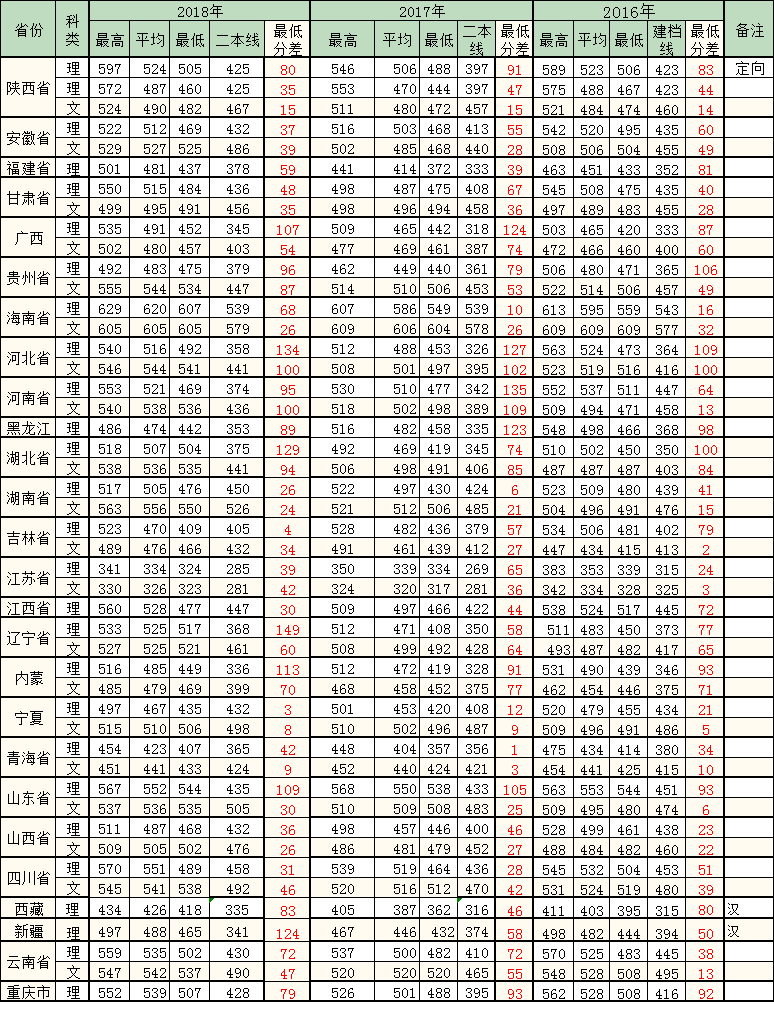 pp电子官方网站近三年本科分省录取成绩统计表