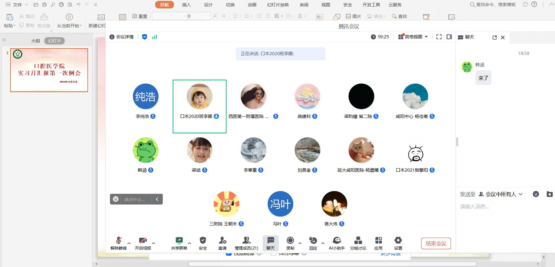 12月31日,pp电子官方网站为强化实践教学质量,深入了解实习生动态,组织召开了实习小组月汇报例会。此次会议在线上举行,学院院长、实习专干、辅导员和各实习小组组长参加,旨在聚焦实习生在医院的成长收获、遭遇难题、学生管理等方面,为后续实习巡查反馈会做好准备,力促教学实践环节紧密衔接。