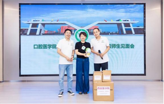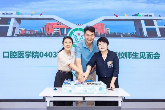 随后进行了校友捐赠仪式。校友给母校捐赠了10套头颅模型教具,给老师们赠送了精美的伴手礼,并精心准备了切蛋糕环节,邀请三位辅导员见证了切蛋糕的甜蜜时刻。