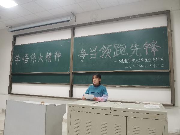 冯叶书记最后强调,“业精于勤,荒于嬉”,我们只有不断学习新思想、新理论,才能不断地深化对共产党人初心使命的认识领悟。通过本次主题演讲活动,同学们也领悟到了工匠精神、和平统一精神、英雄人物精神及女排精神等一系列伟大中国精神的精髓,并认识到这对于我们树立崇高理想,坚定理想信念,弘扬优秀的民族精神有着至关重要的作用。我们要传承革命精神,努力践行自己的初心使命,及时地对照先进典型查找自身的差距与不足,锚定目标,锲而不舍,做到在困难面前豁得出、关键时刻冲得上,做一名合格的共产党员。