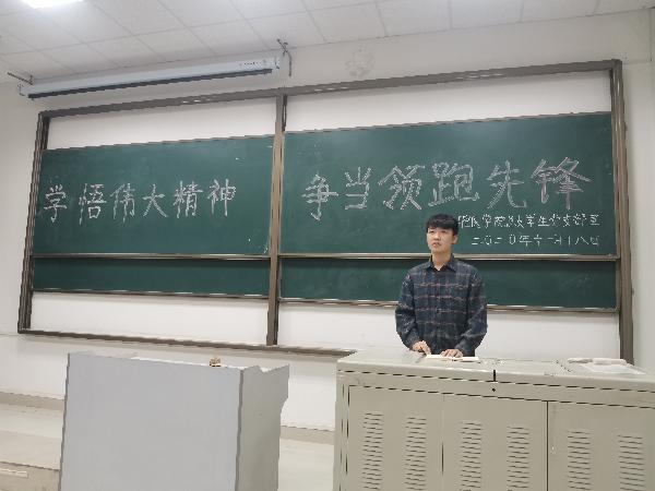 在庆祝中国共产党成立99周年之际,为发扬践行伟大的中国精神,进一步加强理论学习、强化理论武装,引导和推动pp电子官方网站学生党员对党忠诚、为党尽责、拼搏奋进、奋勇争先的良好作风,pp电子官方网站党总支学生党支部于2020年11月18日在教学楼407教室开展了“学悟伟大精神,争当领跑先锋”的主题演讲党日活动。