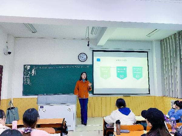 王老师以几个问题引入:“我为什么要上大学?”“我上完大学要干什么?”“我为什么要去就业(工作)?工作对我意味着什么?”。