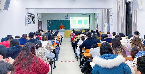 图一 王文鹓科长为16级、17级学生开展就业指导宣讲