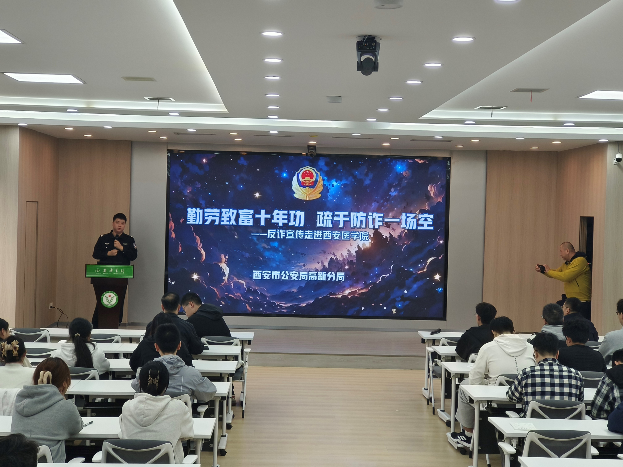 11月4日下午,在高新校区,学院开展“筑牢安全底线,护航青春成长”的反诈系列安全教育活动,活动邀请西安市公安局高新分局反诈中心宣传员杨浩宇警官、管片民警-白沙路派出所景晓峰警官做反诈安全讲座并指导消防演练,学院师生200余人参与活动。学院党总支副书记周晓华主持活动。