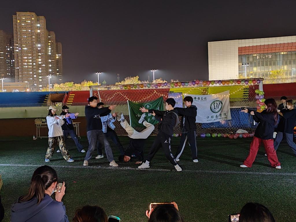 由校舞蹈团和药学院的同学们带来舞蹈,接下来有rap、集体吉他弹唱,双人合唱,单人舞蹈等节目。 之后,在主持人的带领下,同学们分成8个小组,以小组为单位进行趣味游戏活动,一共举行了三场小游戏,分别是:你画我猜,你有我没有和不要做什么。