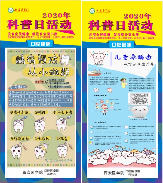 pp电子于2020年9月4日起,pp电子学生科组织策划并开展以口腔所有在校学生为主体,征集口腔科普相关宣传作品的活动,同时教学科予以协助,为需要指导的学生团队和个人联系老师。截至9月15日,pp电子学生科共收集到学生科普作品21份,其中科普视频3个,科普宣传海报18份。经过学院和学生之间的层层选拔,选出优秀作品和视频制作成展板,在校园内进行展出,并在pp电子官方网站微信公众号上进行展示。此次学生们制作的口腔科普宣传作品涉及到龋病、牙周病等口腔常见疾病的临床症状、预防、诊断及治疗,以及唇腭裂的序列治疗方案,有助于大家更好的了解口腔,也更加关注口腔健康。