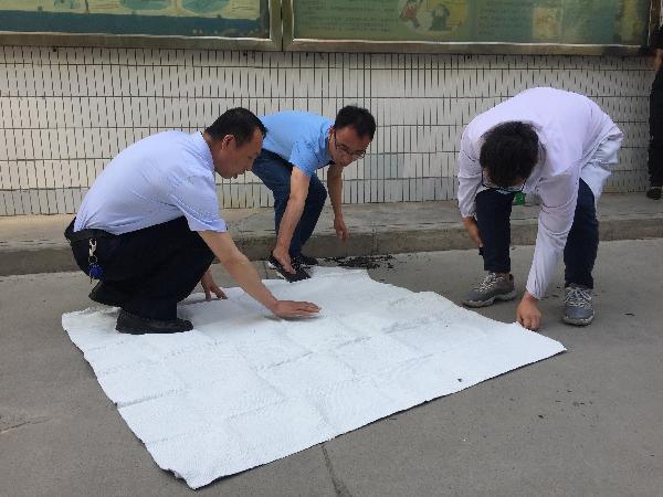 老师与学生共同使用灭火毯灭火
