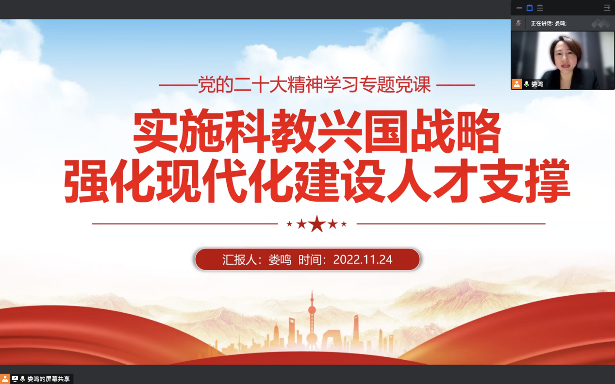 11月24日,pp电子官方网站党总支召开第八次理论学习中心组专题学习会议,副校长和新盈、党委宣传部部长耿潇潇巡学旁听。会议由pp电子官方网站党总支书记娄鸣主持,采用线上形式进行。