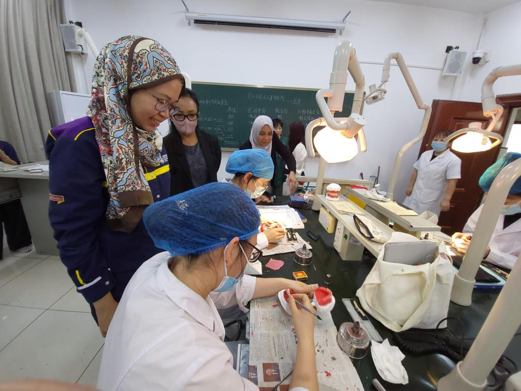 2023年5月19日至23日,玛拉工艺大学牙科学院院长艾达•努尔•阿希金•宾蒂•阿布德•拉赫曼等14名师生来访pp电子官方网站及pp电子官方网站,中马两国师生就口腔医学教育教学、科学研究、两国文化进行了深入的交流学习。