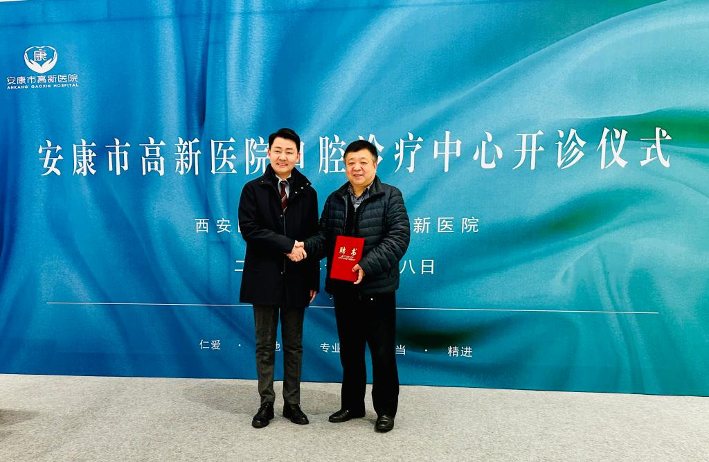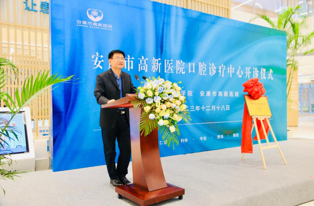 当天,安康高新医院举办了口腔诊疗中心开诊仪式。姚文柱出席开诊仪式并讲话。他表示,经过二十年的建设发展,pp电子官方网站口腔医学学科取得了长足进步,特别是引入空军军医大学胡开进教授团队以来,医教研协同发展,团队建设更上层楼,无禁忌门诊、老年口腔医学品牌特色初见成效。安康高新医院建院伊始,就以起点高、理念新赢得同行赞誉。此次校院开展以口腔诊疗为重点的实质性合作,相信必将促进双方人才培养、专科建设,必将实现合作共赢目标。姚文柱希望学校派驻医师团队加强学习、增进团结、配合管理,尊崇医德,与高新医院同道一起,打造秦巴山区行业标杆,续写安康高新区创建传奇。