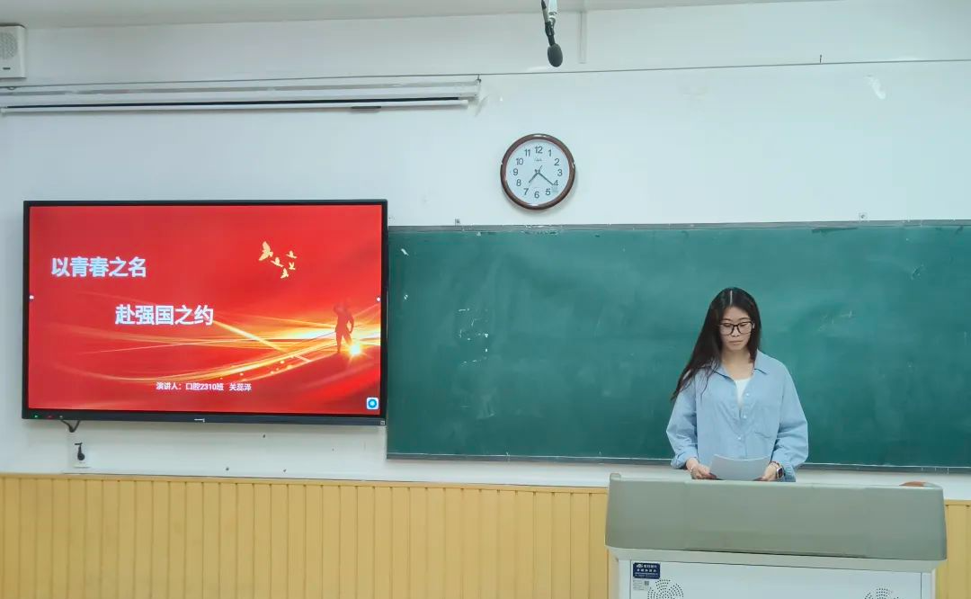 退役复学学生张鑫阳以“心怀国防热望,共筑山河安澜”为主题,通过讲述中国国防的光辉历程,展现了国防力量的坚不可摧。他提到,从抗日战争到抗美援朝,从两弹一星到现代化军队建设,中国国防事业的发展离不开无数英雄的奉献。他呼吁同学们铭记历史,珍惜和平,为国防事业贡献自己的力量。